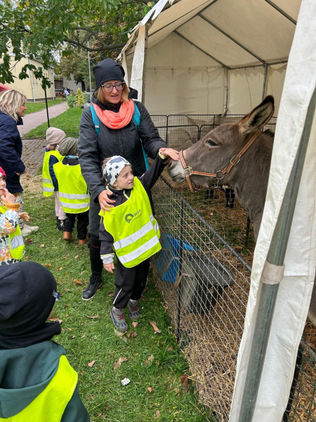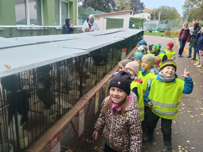 V pátek 10. října 2025 se děti ze třídy Srdíček a Kytiček vydaly na výstavu do areálu Střední školy zemědělské Chrudim. Chovatelé vystavovali drobná hospodářská zvířata, která si děti s nadšením prohlížely a pozorovaly. K vidění bylo mnoho druhů holubů, králíků, drůbeže…Kdo měl z dětí odvahu hladil si hebký kožíšek králičího chlupáče. V ohradě se procházeli oslíci, telátko a kozičky. V budově školy byla voňavá výstava ovoce a zeleniny. Děti se seznámily s ptáky, které můžou vidět cestou městem nebo si prohlížely, jak vypadají kostry domácích zvířat. Ani zemědělská technika neušla dětské zvídavosti. Posadit se do velkého traktoru byl pro mnohé zážitkem. Výstava byla pro všechny děti plná inspirace a zážitků.