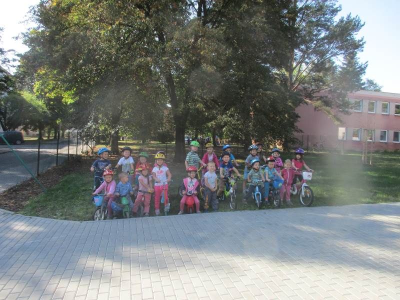 V pondělí 17. září 2018 se naše školní zahrada proměnila na dopravní hřiště. Od rána do školky přijížděly děti na koloběžkách, odrážedlech a šlapacích kolech. Každá třída měla svoje parkoviště. A věřte, že ráno v 8 hodin už byla plná. Dnes jsme se užili akce DEN BEZ AUT. Za našimi malými cyklisty přijala státní policie, městská policie a studentky zdravotní školy. Dopravní policista předvedl dětem svoji motorku, na kterou si ti odvážní mohli sednout. Ukázal a vysvětlil jim všechna tlačítka a spínače, na co jsou. Policistka s dětmi probrala dopravní značky a jak se zachovat v různých dopravních situacích. Strážníci městské policie dětem ukázali veškeré příslušenství, které potřebují při svoji práci. Vysílačky a radary. Obušky a pouta, která si děti vyzkoušela. Uspávací pušky na zvířata, pistole i měřič alkoholu v krvi, o kterém si děti myslely, že je to telefon. Kromě pout si oblékly i čepice a vesty. Velkou radost měly, když si sedly do policejního auta a řídily a houkaly…U studentek ze zdravotní školy se děti dozvěděly spousta důležitých věcí. Jak masírovat srdce, jak umět dávat umělé dýchání, zavázat poranění na ruce, noze nebo hlavě. A to zdaleka nebylo ještě všechno. Naši cyklisti ještě mohli ukázat svoje řidičské umění před školkou, kde měli prostor na volnou jízdu. Ještě si změřili svoje síly v jízdě s kolečkem, v navíjení autíček na cívku. Kreslili dopravní značky….Dopoledne uletělo, jak letadlo na obloze, ale naše děti si ho parádně užily.