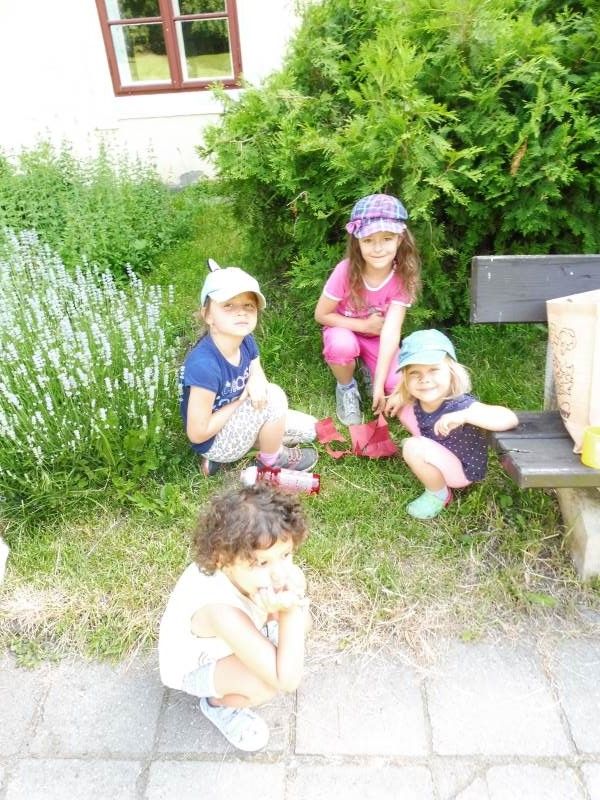 Broučci v Medlešicích si ve středu 12. června 2019 užili hravé dopoledne v zámeckém parku a na školní zahradě. Rozdělili se do několika týmů. Kytičky, houbičky, čtyřlístky, hvězdičky a motýlci. Jejich cílem bylo hledání kamínků se stejným symbolem, papírových ruliček se stejným symbolem, které po rozbalení navedly děti k nalezení klíče k pokladu. Po složení rozstříhaných obrázků děti poznaly, že klíč se nachází přímo v pískovišti. A věřte, to nebyla chůze, ale přímo útěk. A nastalo hrabání a hledání, které bylo úspěšné. Klíče k pokladu byly nalezeny. A co bylo dál? Nalezení a dělení pokladu, který byl fajn. Příjemně strávené dopoledne si pro děti připravila maminka Sárinky a Broučci moc děkují.