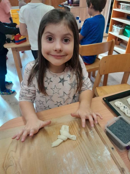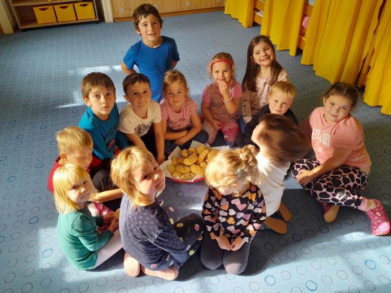 …uždibuje kousky. Pekařka mu pomáhá, uždibují oba dva. A věřte, kousky uždibovaly i děti na třídě Broučků. Ale jak všechno začalo? Pohádkou Kuřátko a obilí. Děti si důkladně prohlížely a zkoumaly jednotlivé druhy obilí, klásky, zrníčka, a co je uvnitř. Při písničce Jsou mlynáři chlapy, chlapy si děti zahrály na větrný mlýn. Do mouky malovaly obrázky…Na konci týdne už děti věděly, co všechno se musím stát, než si pochutnají na voňavém pečivu. V pátek 13. října 2023 si děti na opravdové pekaře zahrály. Společnými silami děti, vlastně pekaři a pekařky, zadělaly těsto a upekly si makové houstičky. Ty vám voněly a hlavně chutnaly.