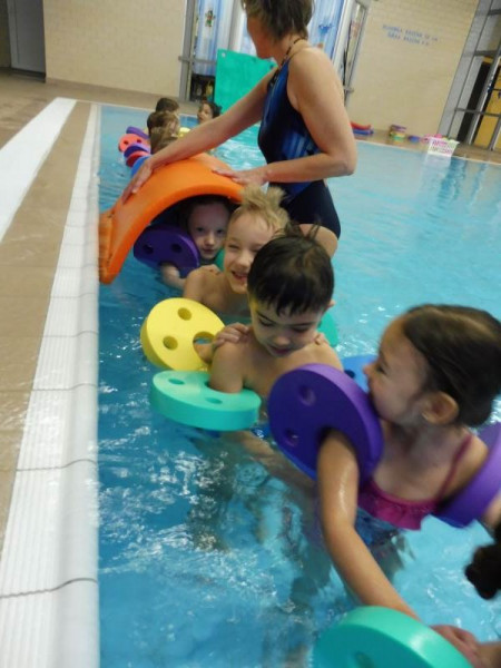 Několik Broučků z Medlešic začalo jezdit na plavecký výcvik. Do vody se moc těšili, proto si rychle oblékli plavky, osprchovali se a už čekali na paní plavčici, která dětem nejdříve vysvětlila, jak se správně chovat v bazénu. Děti si vyzkoušely několik her. Na tuleně. Na vodníka. Na krokodýla. Malí plavci napodobovali zvířátka, zkoušeli foukat do vody, potápěli se pro plastové kroužky, s pomocí destičky si lehli na vodu, … Plavání se dětem moc líbilo a vždy se těší, až pojedou příště.