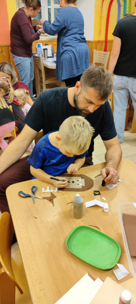 Ve čtvrtek 16. října 2025 proběhlo u Broučků Podzimní tvoření pro rodiče a jejich děti. Během malé chvilky se třída úplně zaplnila a všechny židličky byly obsazené. Celé odpoledne se neslo v příjemné atmosféře, kterou doplnilo nadšení malých i velkých tvůrců. Společně si vyráběli roztomilého ježečka z papíru a také jednoduchou, ale zábavnou hračku z kaštanu. A věřte, všem se dařilo. Malým i velkým. Výsledkem byly krásné podzimní dekorace, které si všichni s nadšením odnesli domů. Poděkování patří dětem, ale i rodičům, že si užili s dětmi společné odpoledne plné radosti a smíchu.