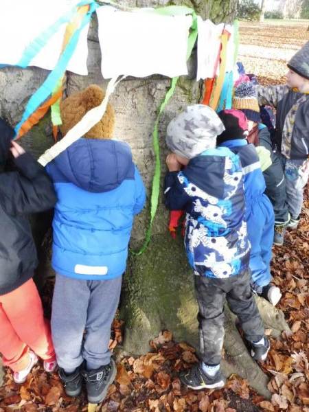 Ve čtvrtek 19. listopadu 2020 se naši Broučci v Medlešicích rozhodli uspat Stromového dědečka. Namalovali mu spoustu krásných obrázků, zazpívali několik podzimních písniček, a hlavně nechyběla ukolébavka. Stromového dědečka nazdobili namalovanými obrázky a proužky barevného krepáku. Popřáli mu, ať se mu v zimě příjemně spí a zdají se mu krásné sny.