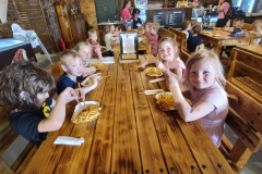 Ve středu 5. června 2024 již od rána svítilo sluníčko a bylo pohodové počasí. Všechny děti už nemohly dospat a těšily se na celodenní výlet. Čekala nás hodinová jízda třemi autobusy do Úmonína. Sportovní oblečení a batůžky naplněné pitím a dobrůtkami. Bez nich by výlet nebyl výletem. Heroland, tedy dětský zábavní park na nás už čekal. Při průchodu branou se všem dětem radostně rozsvítila očka a zábava už neměla konce. Čekala na ně velká množství herních sestav. Velkoplošné vzduchové trampolíny, šlapokáry, lanová dráha, velké pískoviště, různé druhy houpaček, hranolkoviště, velký herní dřevěný hrad, pirátská loď a vodní svět. Během chvíle z dětí byly rytíři, námořníci, letci, závodníci….někdo si hladil ochočené kozičky. A to zdaleka nebylo všechno. Děti si při tvořivé dílničce namalovaly temperovými barvami dřevěné domečky. Energii doplňovaly obsahem svých batohů a v poledne si ve stylové stodole pochutnaly na obědě. Zpátky děti do Chrudimě dorazily po 14 hodině plny dojmů a spokojenosti.