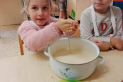 Děti na Korálkové třídě si dva týdny vyprávěly, jak z malého obilného zrnka vyroste obilí a co vše se musí ještě stát, aby všechny děti měly ve školce namazaný chleba k svačině. Vyprávěly si pohádku Kuřátko a obilí, Bez práce nejsou koláče. Zpívaly Jedna, dvě Honza jde, Pekla vdolky, a To je zlaté posvícení. Rytmizovaly Melu, melu pšeničku a Pekař peče housky. Kreslily do mouky. Malovaly kuřátko. Stříhaly a lepily koláče. V pátek 23. září 2022 jely do Mlýna Janderov, kde prozkoumaly, jak se ze zrníček namele mouka. A protože hospodářský rok končí posvícením, tak si ve čtvrtek 29. září 2022 připravily chutné sladké palačinky. A věřte, chutnaly.