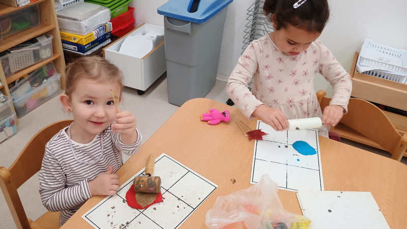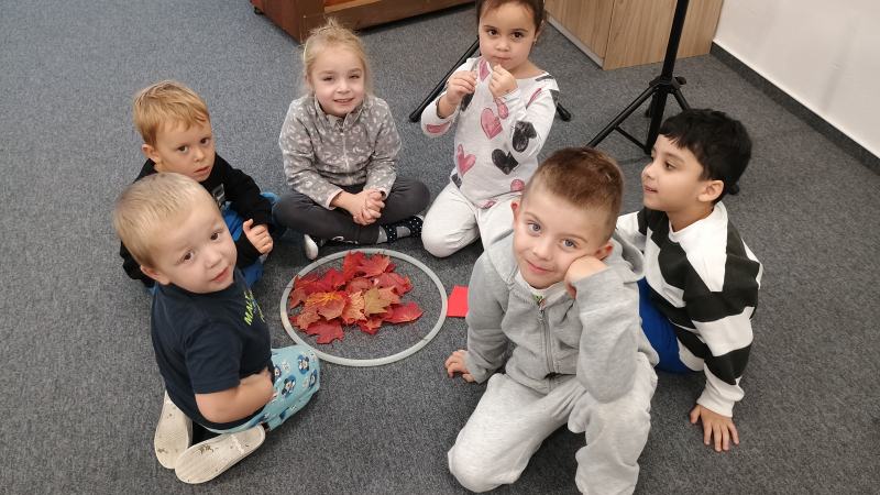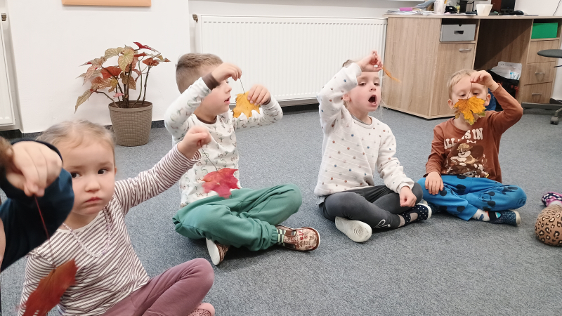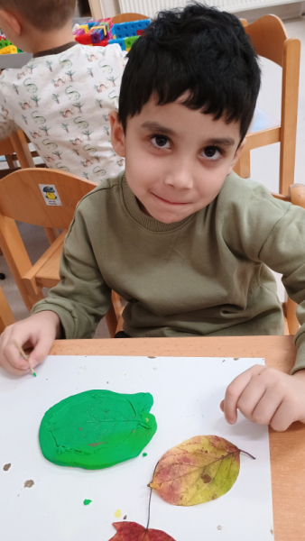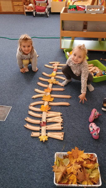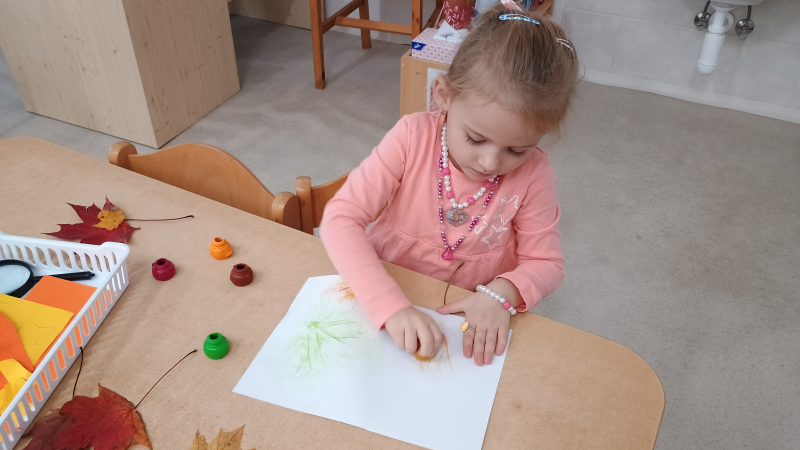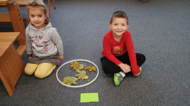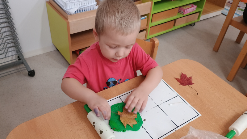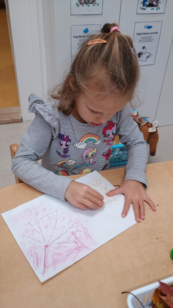 …barvičkami čaruje, na lístečky maluje. Srdíčkové děti si celý týden ke svým hrám, činnostem a aktivitám vybraly barevné listí a udělaly dobře. Třídění podle barev, velikosti a tvaru zvládli malí i velcí. Vyráběli lístečkové skřítky a domečky. V centru pokusy a šikovné ruce děti velmi zaujala frotáž listů a vytváření otisků do modelíny. Děti zkoumaly, jak jsou lístky protkány žilkami, jako lidské tělo. Při pobytu venku děti pozorovaly, jak se příroda mění a vyhledávaly barvy, kterými pan Podzim čaruje a maluje všechny listnaté stromy.