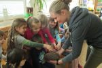 Poslední únorový den jsme si v mateřské škole zpestřili příjezdem několika drobných zvířat a ptáků. Přivezli nám je Ondřej a Lenka ze Žlebské obory. Na jejich otázku jestli děti vědí co je to záchranná stanice, se z dětského kolektivu ozvalo: Tam jsou přeci sanitky. Záchranná stanice je vlastně nemocnice pro zvířata, v níž se uzdraví a vrátí se zpátky do přírody. Jaké mají smysly lidé? Jaké mají smysly zvířata a ptáci? Zrak tedy oči. Hmat tedy ruce, nohy, tlapky, fousky. Sluch tedy uši. Čich tedy nos, čumáček. Chuť tedy pusa, ústa, tlamička, jazyk. Ondřej nám nejprve představil drobné savce a vysvětlil nám, že savci jsou všichni, kdo sají mléko. Zvířata i lidé. Ježka jménem Jasmínka si děti bez ostychu hladily a pozorovaly, jak se dokáže skulit do klubíčka. Vojta z Kytiček s rozzářenýma očima konstatoval: Je úplně boží! A měl pravdu, ale to byl teprve začátek. Dozvěděli jsme se, že potkan Dášenka se orientuje pomocí svých fousků. Nejlepší sluch má prý netopýr, o kterém děti říkaly, že vypadá pěkně strašidelně. Poštolka May nám předvedla, jak umí létat. O sově pálené jménem Skoti, jsme se dozvěděli, jakým způsobem slyší, když nemá uši. Kolem očí má soví závoj, který funguje, jako satelit a zachytává zvuky. Dravci mají dobrý zrak a sovy zase sluch. Pak se nám přestavili Fanda a Vanda. Zvířata s nejlepším hmatem a to švábi, kteří rychle zvládli překážkovou dráhu z našich rukou a dlaní. Někdo se smál, někdo se bál. Poslední se nám představil Jonáš neboli krajta královská. Zajímavé je, že hadi nemají sluch, protože jim nenarostly uši a svým jazykem, který vyplazují, ochutnávají vzduch jestli se blízko nenachází potrava. Hadi totiž vidí teplo. Všechna zvířata i dravci nás potěšili a pěkně jsme se s nimi pobavili.