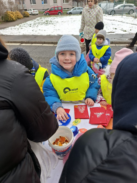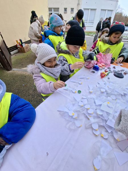 Ve čtvrtek 27. listopadu 2025 se vydali předškoláci do Základní školy Bohemia, kam byli pozváni na vánoční jarmark. Jen děti přišly, čekalo na ně samé tvoření a vyrábění. Kouzlo vánoční pohody se rozprostíralo všude kolem. Děti vyráběly anděly, sněhuláky, sobíky, vánoční přáníčka, rukavičky…Tolik práce děti vyčerpalo, ale energii hned doplnily teplým čajem, moštem a výbornou palačinkou.