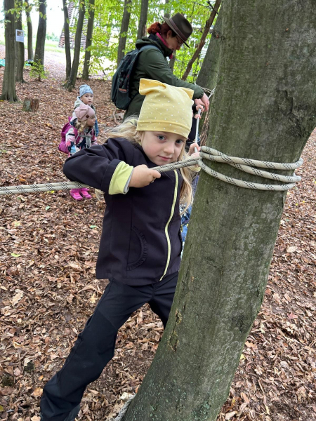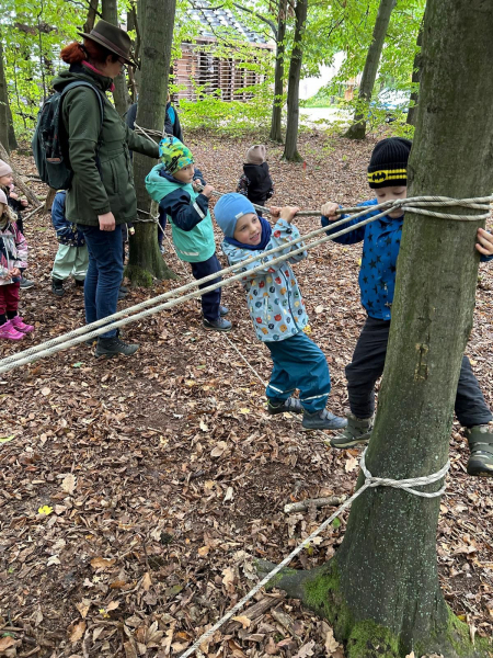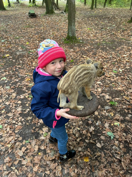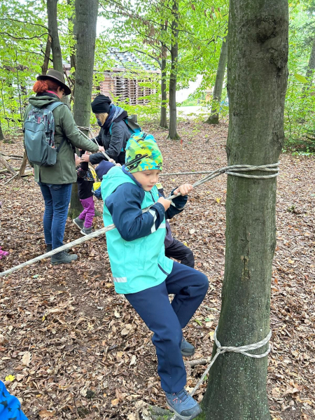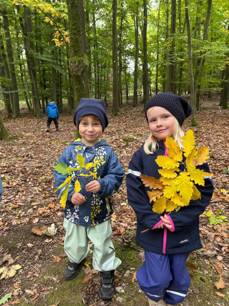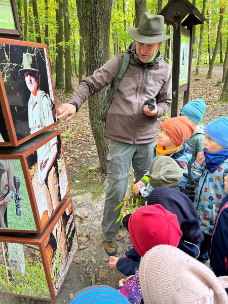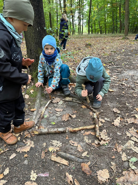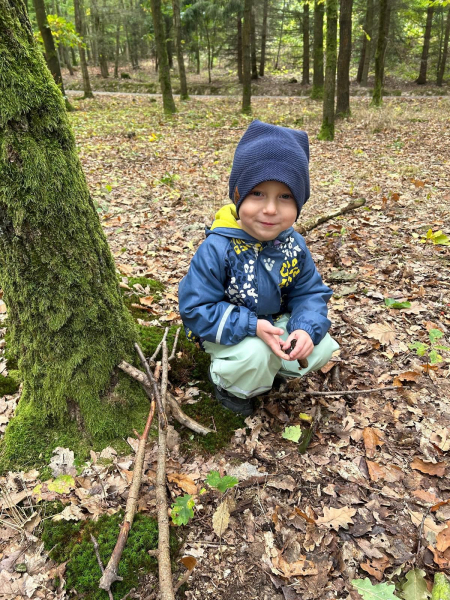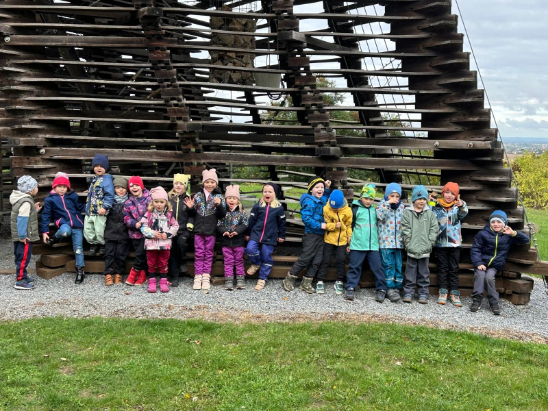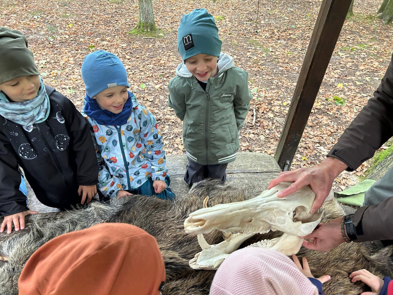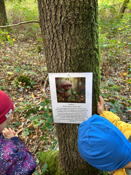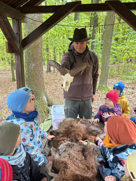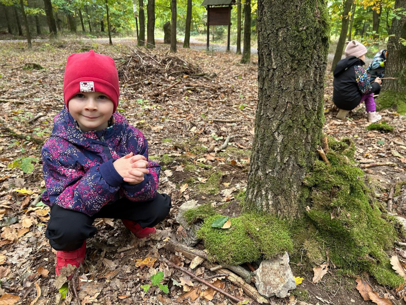 V úterý 7. října 2025 se děti ze třídy Kytiček a Broučků vypravily na dobrodružnou cestu plnou her a nových zkušeností do Městských lesů Chrudim – Podhůra. Pod rozhlednou Bára na ně čekali lesníci Soňa a Petr, kteří si děti rozdělili na dvě party a vyrazili s nimi na výpravu do lesa, kde si pro ně lesní skřítci připravili několik vědomostních a pohybových úkolů. Děti už teď vědí, jak se mají v lese chovat, co všechno v lese mohou sbírat, jak vypadá krmelec, z čeho se skládá strom, kdo všechno se o les stará, co do lesa rozhodně nepatří, jak vypadá taková kůže či lebka divokého prasete, kuny, daňka, parohy jelena, srnce či rohy muflona. Svoji obratnost si děti vyzkoušely na malé překážkové dráze a trefovaly se šiškou k veverce do šiškoviště. A nakonec, aby bylo skřítkům v zimě dobře a teplo, postavily jim překrásné domečky.